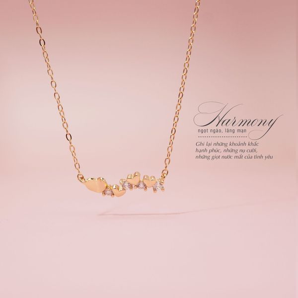 𝑯𝒂𝒓𝒎𝒐𝒏𝒚 𝒐𝒇 𝑯𝒆𝒂𝒓𝒕𝒔 với thiết kế của những biểu tượng trái tim lấp lánh, tựa như một cuốn sách mở ra, kể về những câu chuyện tình yêu ngọt ngào, lãng mạn. Mỗi viên đá quý trên mặt dây chuyền như một chương truyện, ghi lại những khoảnh khắc hạnh phúc, những nụ cười, những giọt nước mắt của tình yêu.